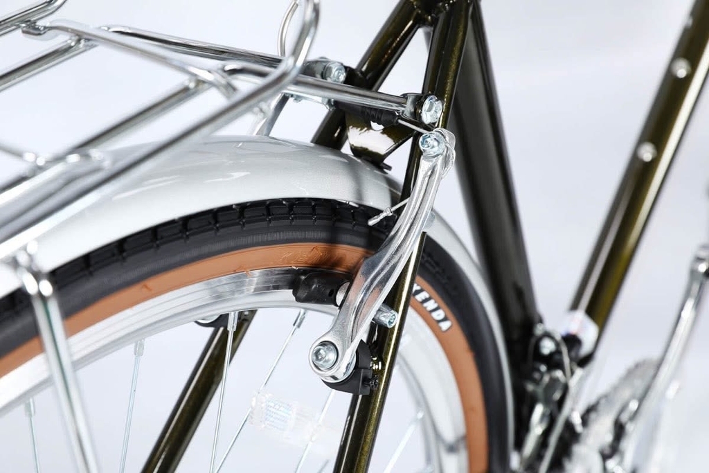 Khung xe làm từ thép cường lực giữ nguyên vẻ đẹp cổ điển, kết hợp hoàn hảo với lốp KENDA 700x32C và yên da nâu cao cấp, tạo nên sự thoải mái và phong cách thời trang cho người sử dụng.