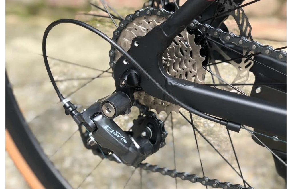 Xe được trang bị bộ truyền động Shimano Claris R2000 với cấu hình 2 đĩa – 8 líp.